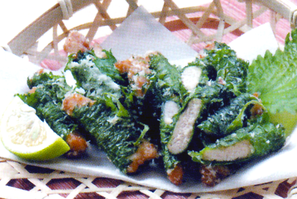 ①手羽肉は皮をとり除き、(A)につけこんで20~30分下味をなじませる。(魚のミンチでも良い) ②大葉は水洗いし水切りする。 ③大葉の片面に片栗粉をつけ、①を一口大の拍子切りにし片栗粉のついた方で肉を巻く。 ④箸ではさんで、中温に熱した油でゆっくり焦がさないように揚げる。
