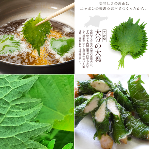 香味野菜で和風ハーブとして刺身のつまや天ぷらで愛され、緑鮮やかな見た目と爽やかな香りが食欲をそそります。