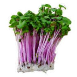 味はかいわれ大根と同じですが、茎が赤紫色しているので食卓に彩りを与えます。品種はお漬物に使われる京野菜の葉大根「しずむらさき」をかいわれにしたものです。